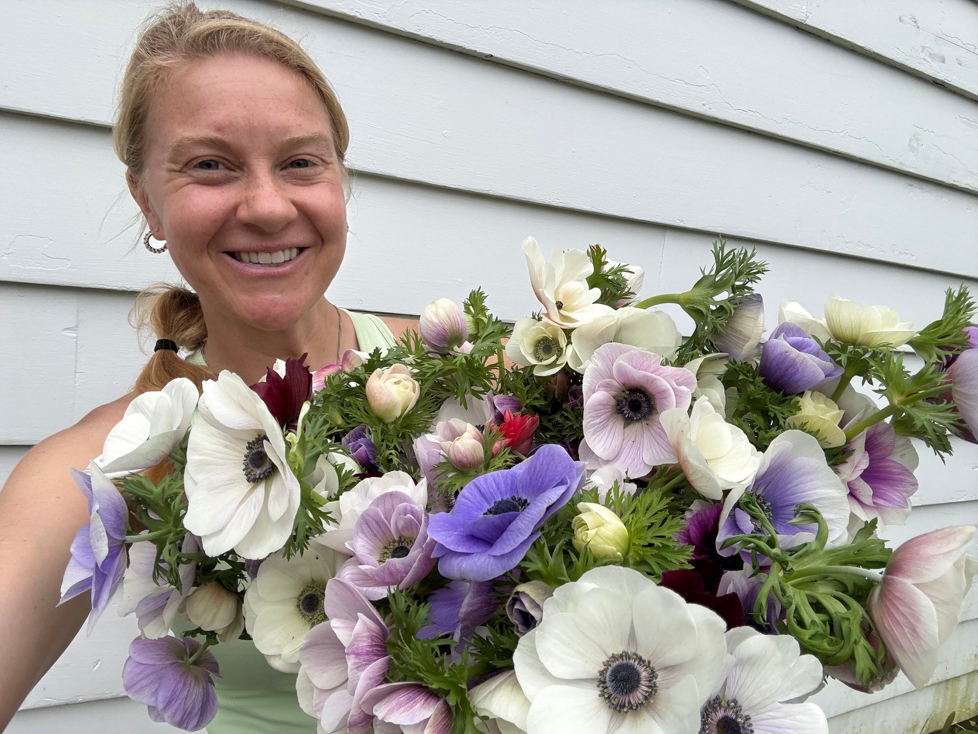 **In the images shown, the white anemone with the dark center is Carmel white. I was SO excited when the anemones started to arrive, that I didn't break out photographs.