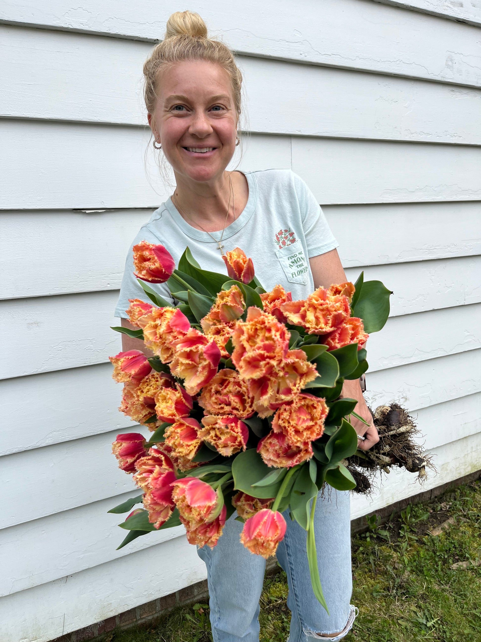 Brisbane truly speaks for herself. The color? Perfection. The Fringe? Don't EVEN. It's so wonderful, so playful, and it makes a tremendous addition to any bouquet or yard. Brisbane is another double that will always have a home in our gardens given her gorgeous coloring any peony-like characteristics.