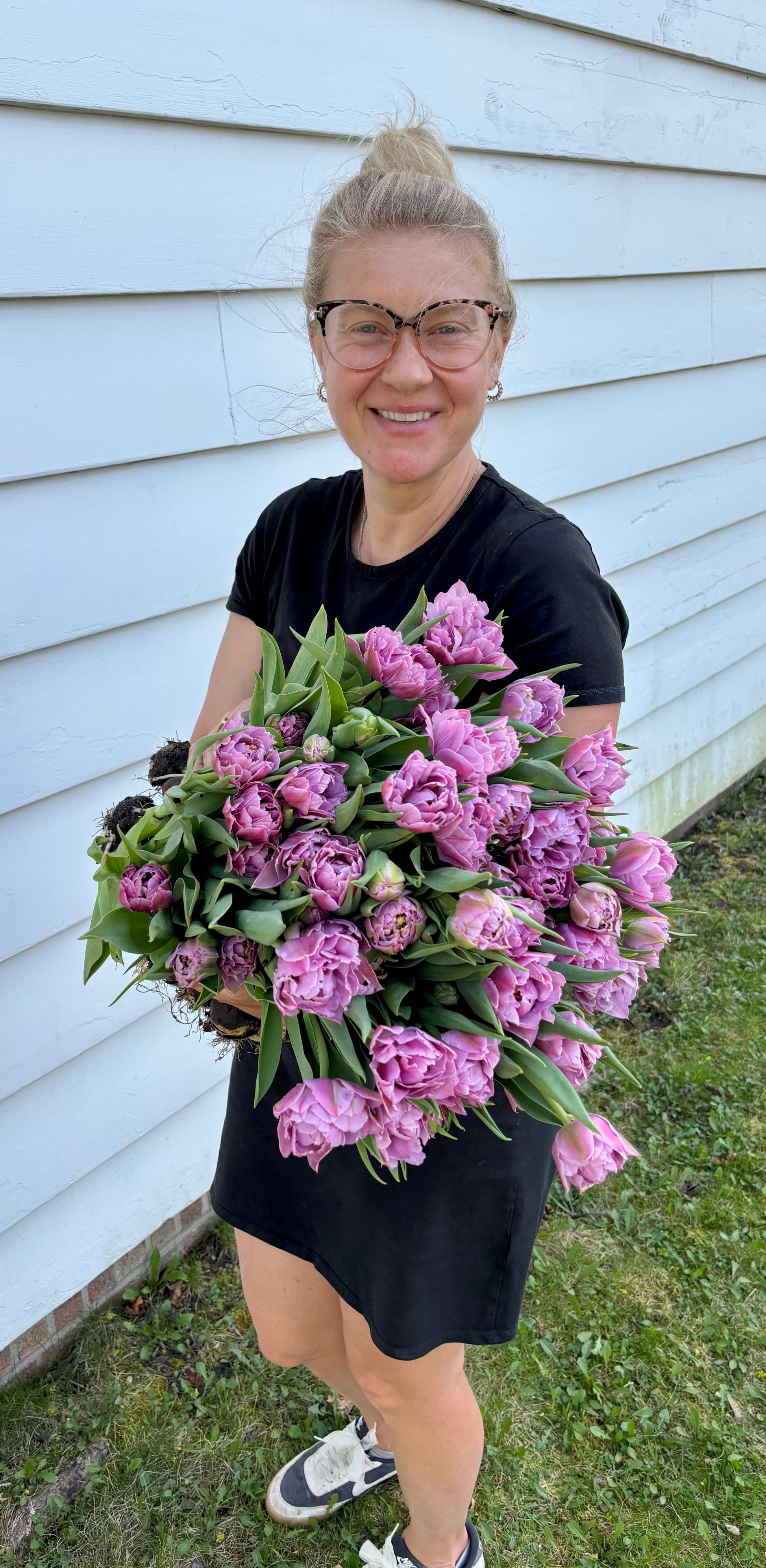 Another absolute stunner for us this year. A beautiful double in the most perfect lilac/pink color. This tulip literally flew off our farm stand.